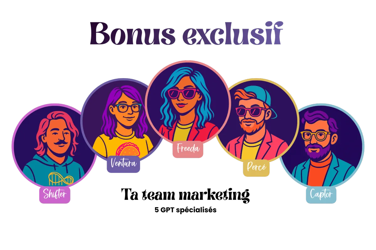 Parce qu’une bonne stratégie commence avec les bons outils, tu recevras le PACK de GPT créé spécialement pour t’aider à bâtir ton manège de gratuité :