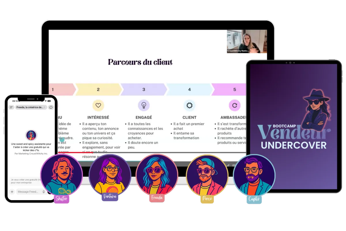 Parfait ça. Tu vas pour la valider et l’optimiser avec nous. Tu vas apprendre à la transformer en Vendeur Undercover : un outil qui attire, engage et vend.