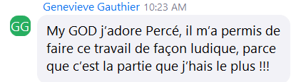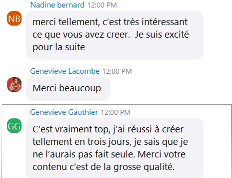 Ce n'est pas juste une formation de plus où on apprend quelque chose, on se met concrètement en action avec la mise en application des apprentissages. Vous formez un duo extraordinaire ! »
