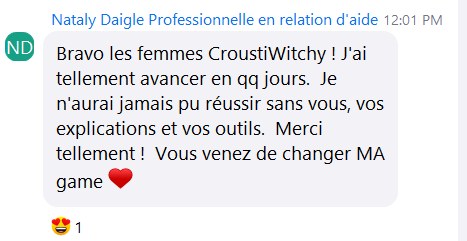 Résultat : j'ai réussi à définir une gratuité différenciante, super alignée avec les besoins de ma cible ! Les filles de CroustiWitchy aident sur la stratégie et l'exécution, c'est ça qui est un combo gagnant. »